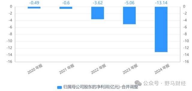 业绩方面,金通灵连年亏损,且越亏越多。2020年至2024年,公司归母净利润分别亏损0.49亿元、0.6亿元、3.62亿元、5.06亿元、13.14亿元。