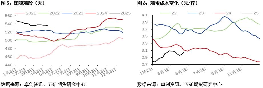 二是市场出清程度不同。去年五一反弹前,市场已经历过较长时间的亏损,所积累的利润总额明显低于今年,成本也要高于今年,且下跌从23年9月就已经开始,当年四季度的盈利状况明显不佳,这导致市场有充分的准备去淘鸡,超淘实际上发生,为后来的现货反转埋下伏笔。而今年无论从亏损时长、盈利积累、鸡龄以及淘鸡的价格表现来看,惜淘时长明显大于超淘,表明截止到当前,从淘鸡角度看,今年市场的出清程度依旧不理想。