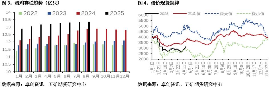 另外,尽管经历了偶然事件的发生,但从节奏上讲,当前蛋价从低位的反弹相对合理,仍未跳脱出季节性走势的范畴(图4),只是因为持续的亏损、绝对位偏低以及预期差的发生导致幅度略有放大。因此通过近期蛋价的反弹,推导出基本面已经发生根本性改变,认为已跳脱出季节性走势乃至出现反转,逻辑上存在瑕疵。