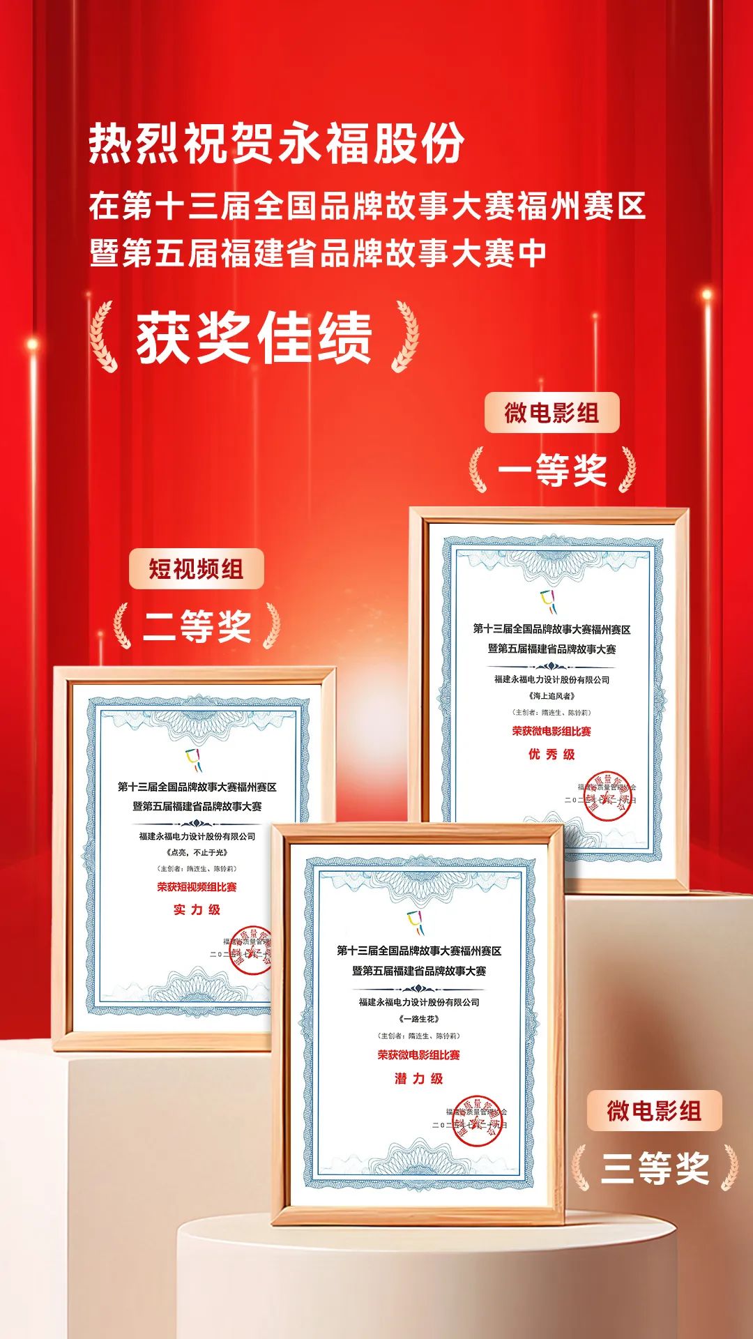 7月29日,第十三届全国品牌故事大赛福州赛区暨第五届福建省品牌故事大赛在福州圆满落幕。大赛公布了征文、短视频、微电影及演讲组获奖名单,永福股份(300712)选送的三部作品悉数获奖,其中微电影《海上追风者》荣获优秀级(一等奖),短视频《点亮,不止于光》获得实力级(二等奖),微电影《一路生花》获评潜力级(三等奖)。