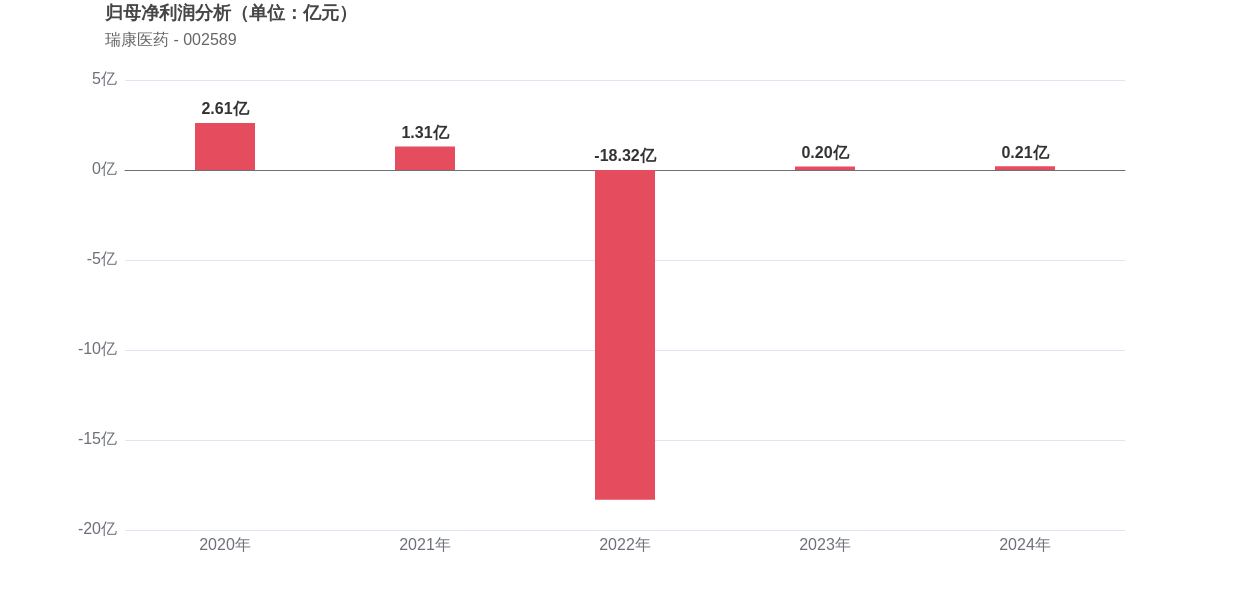 利润角度分析,2020年瑞康医药实现归母净利润2.61亿元,2024年0.21亿元。利润水平持续下滑,盈利能力明显弱化。
